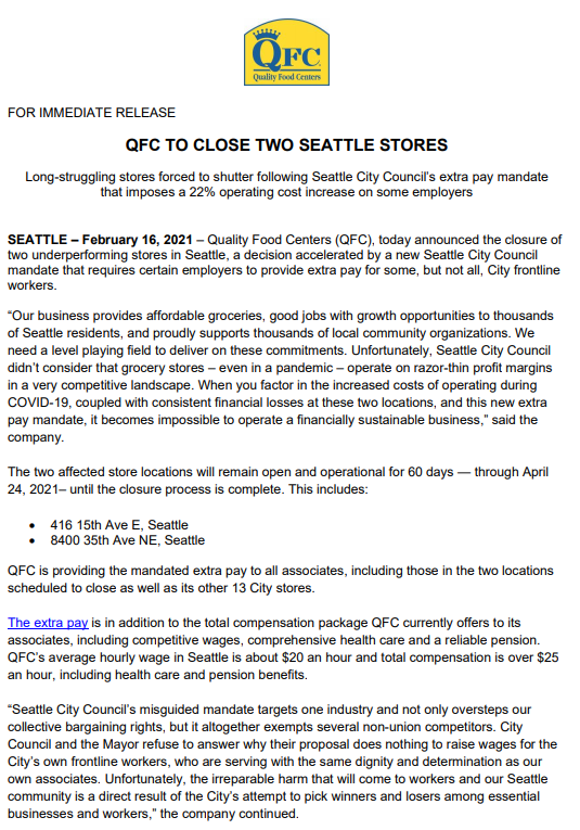 The Urbanist On Twitter Kroger Is Closing Two Qfc Grocery Stores In Seattle One In Capitol Hill And One Wedgwood The Company Says They Were Underperforming But Also Partially Blames A Recent